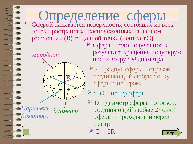 Сфера Урок-лекция по теме: Геометрия –11 класс презентация