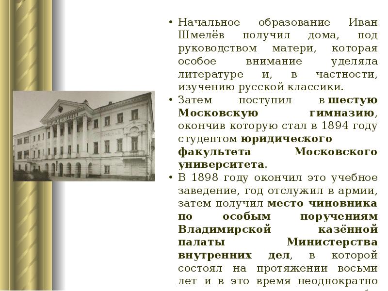 - 2. Иван Сергеевич Шмелёв родился 3 октября 1873 в Москве, в Замоскворечье, в