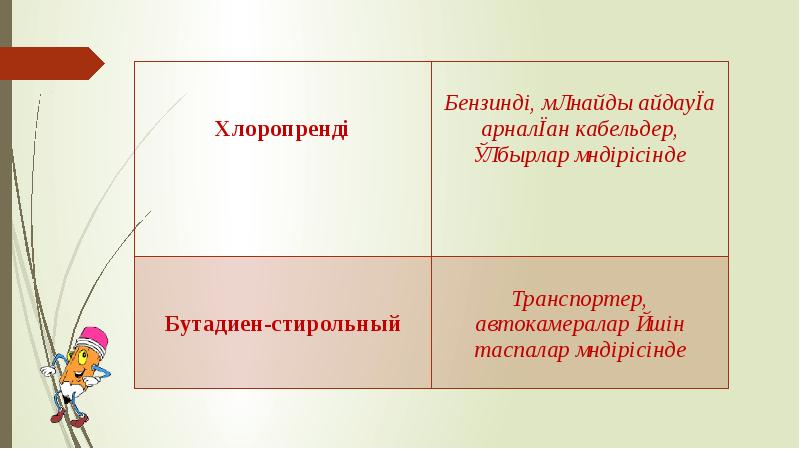 - 5. 3. Синтетикалық каучуктердің түрлері және қайда қолданады?