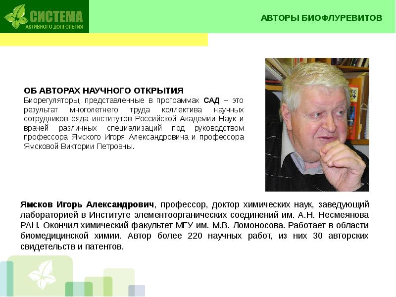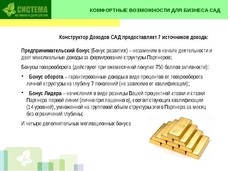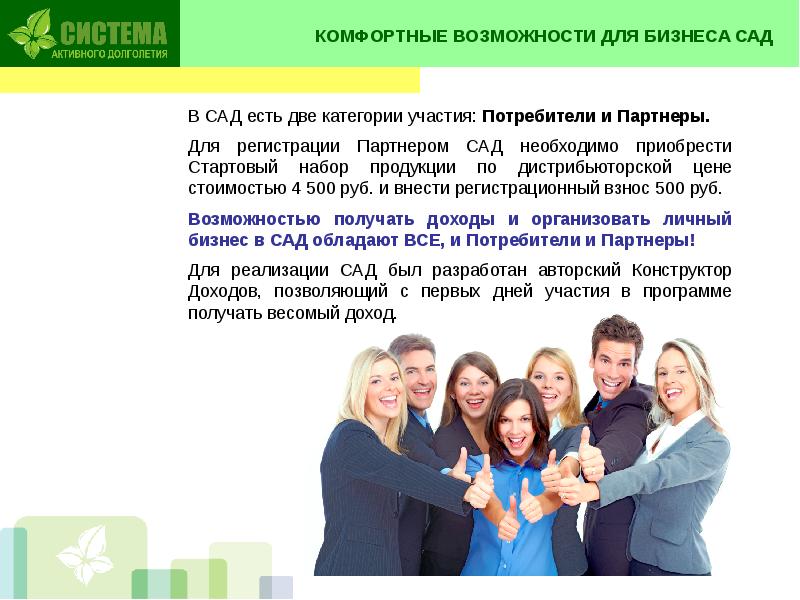 СИСТЕМА АКТИВНОГО ДОЛГОЛЕТИЯ ПРЕЗЕНТАЦИЯ ПРОЕКТА «САД» Международного презентация