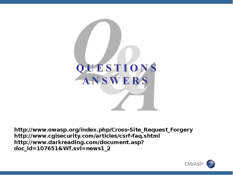 - 7. New Tool: OWASP CSRFTester Test your applications for CSRF Record and