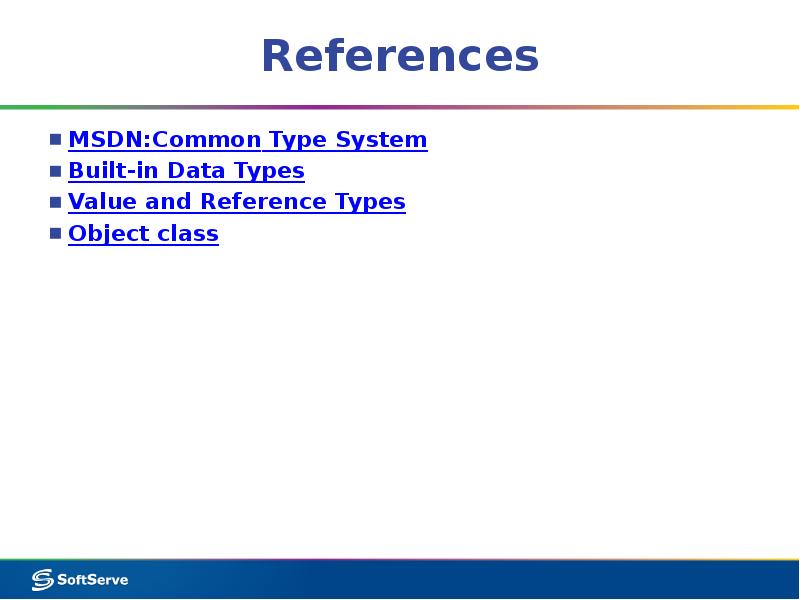 - 18. References MSDN:Common Type System Built-in Data Types Value and Reference Types