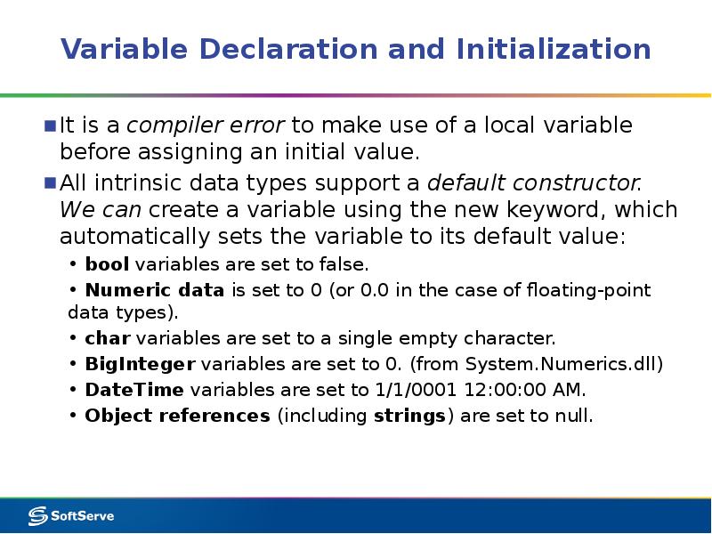 - 7. Variable Declaration and Initialization It is a compiler error to make