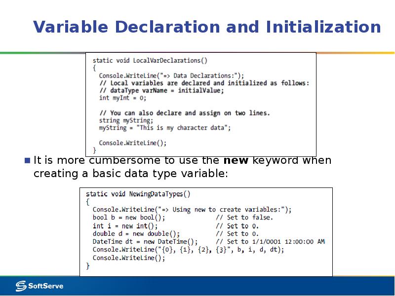 - 8. Variable Declaration and Initialization It is more cumbersome to use the