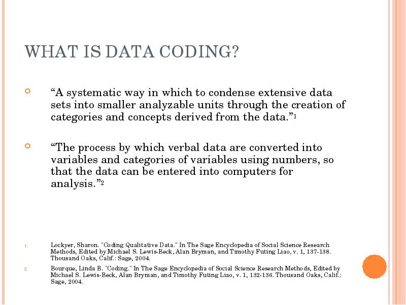 - 2. WHAT IS DATA CODING? “A systematic way in which to condense