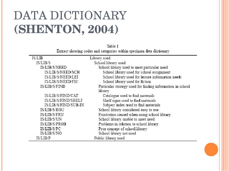 - 17. DATA DICTIONARY (SHENTON, 2004)