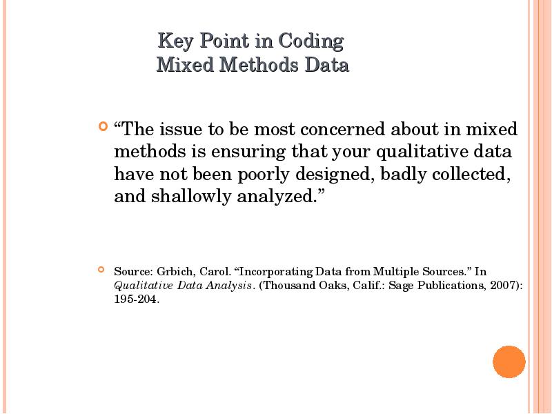 - 25. Key Point in Coding Mixed Methods Data “The issue to be