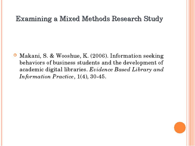 - 26. Examining a Mixed Methods Research Study Makani, S. & Wooshue, K.
