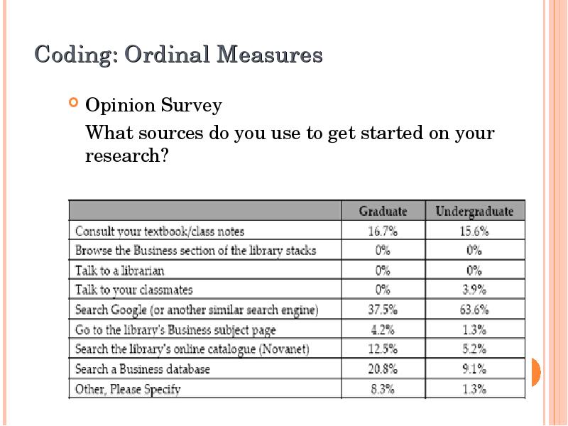 - 31. Coding: Ordinal Measures Opinion Survey What sources do you use to