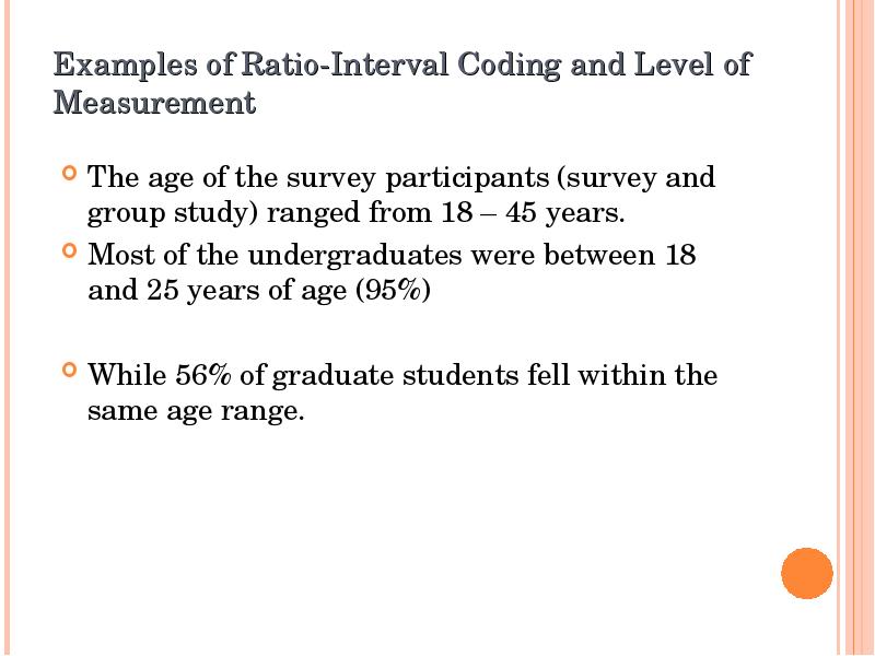 - 32. Examples of Ratio-Interval Coding and Level of Measurement The age of