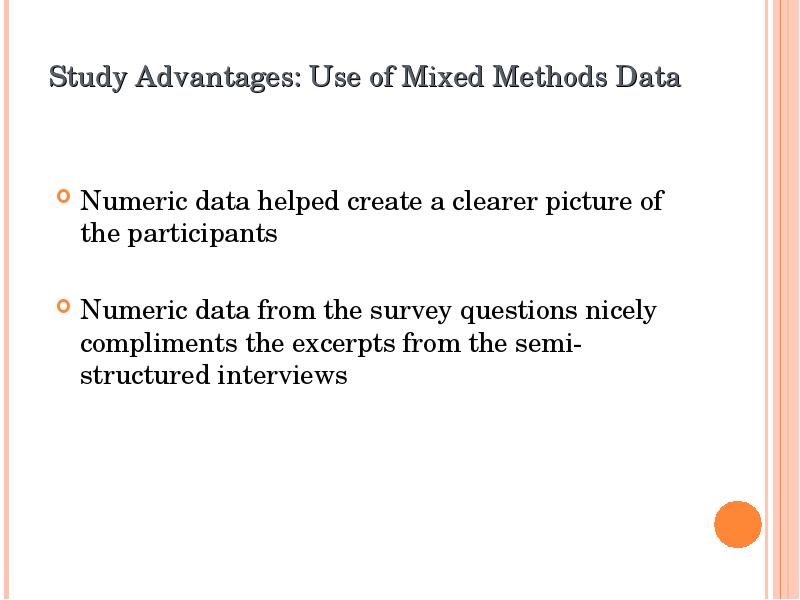 - 35. Study Advantages: Use of Mixed Methods Data Numeric data helped create