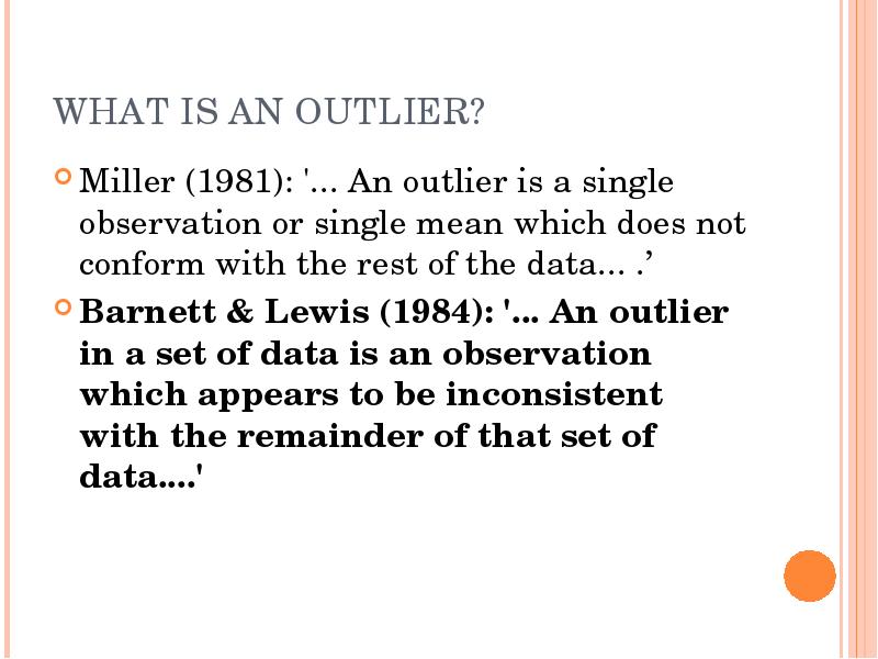 - 37. WHAT IS AN OUTLIER? Miller (1981): '... An outlier is a