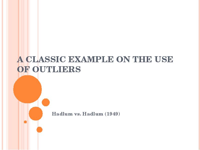 - 41. A CLASSIC EXAMPLE ON THE USE OF OUTLIERS Hadlum vs. Hadlum