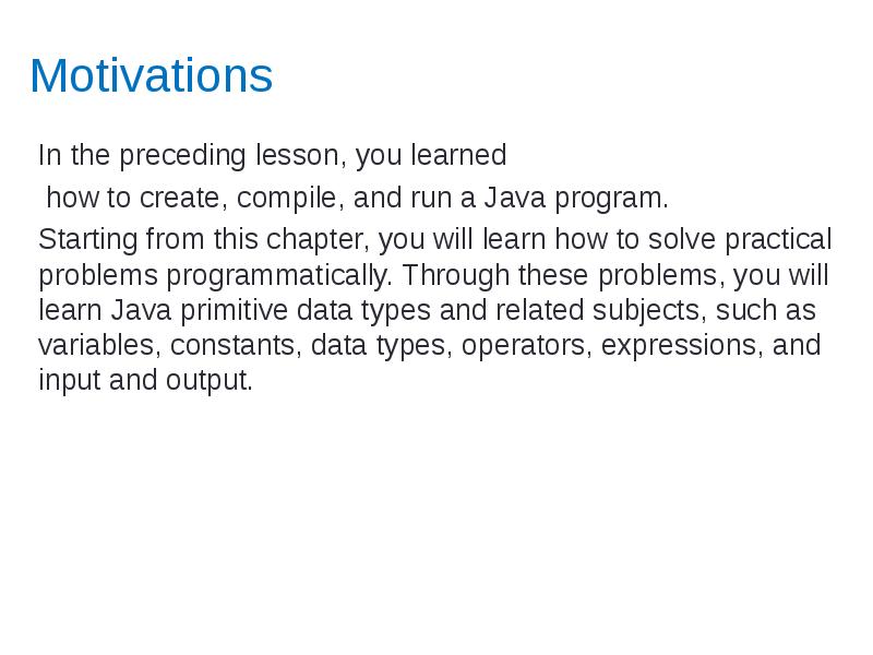 - 2. Motivations In the preceding lesson, you learned how to create, compile,