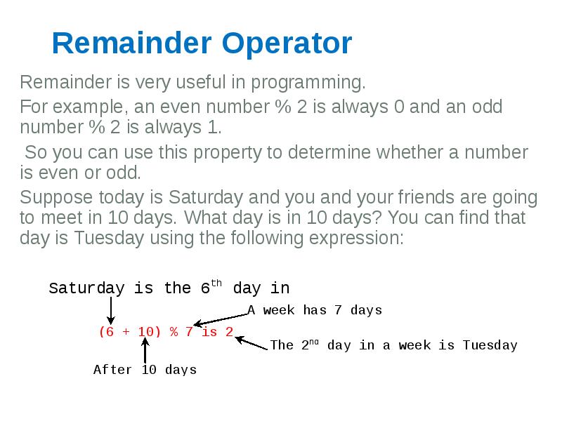 - 19. Remainder Operator Remainder is very useful in programming. For example,