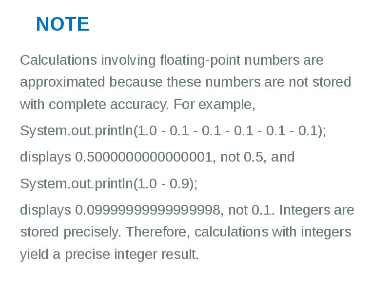 - 20. NOTE Calculations involving floating-point numbers are approximated because these numbers are