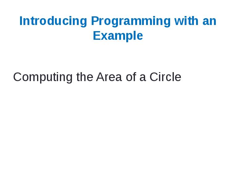 - 3. Introducing Programming with an Example Computing the Area of a Circle