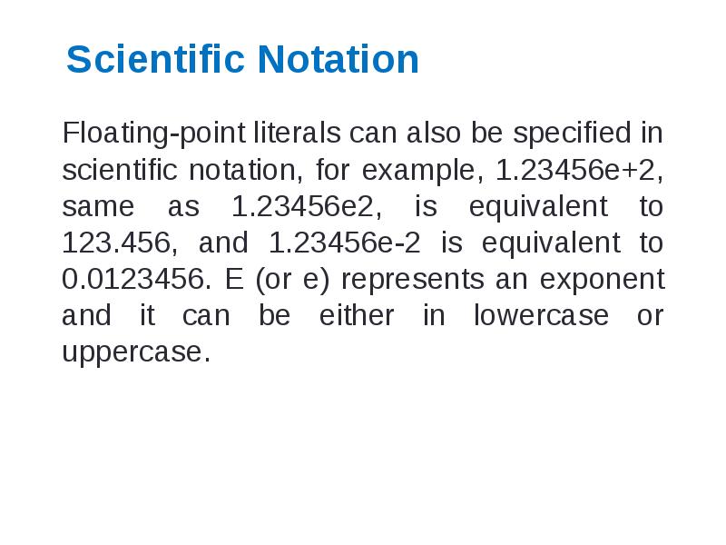 - 24. Scientific Notation Floating-point literals can also be specified in scientific notation,