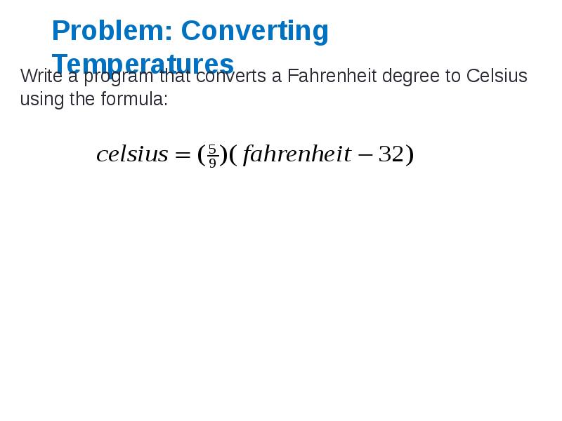 - 27. Problem: Converting Temperatures Write a program that converts a Fahrenheit degree