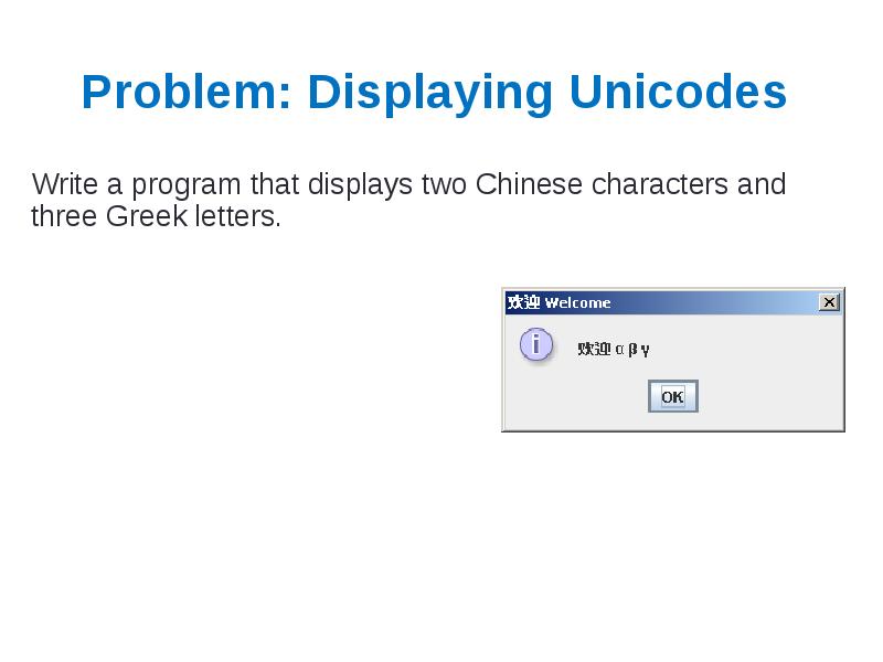 - 40. Problem: Displaying Unicodes Write a program that displays two Chinese characters