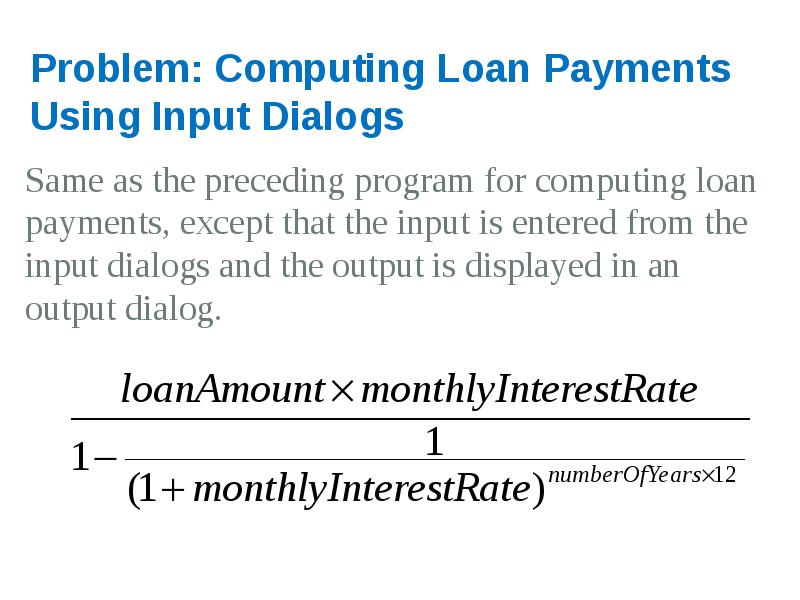 - 65. Problem: Computing Loan Payments Using Input Dialogs