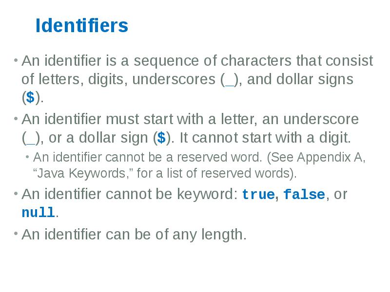 - 10. Identifiers An identifier is a sequence of characters that consist of