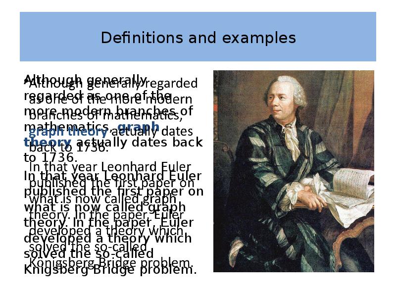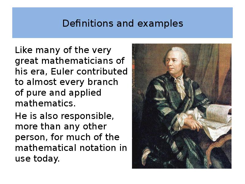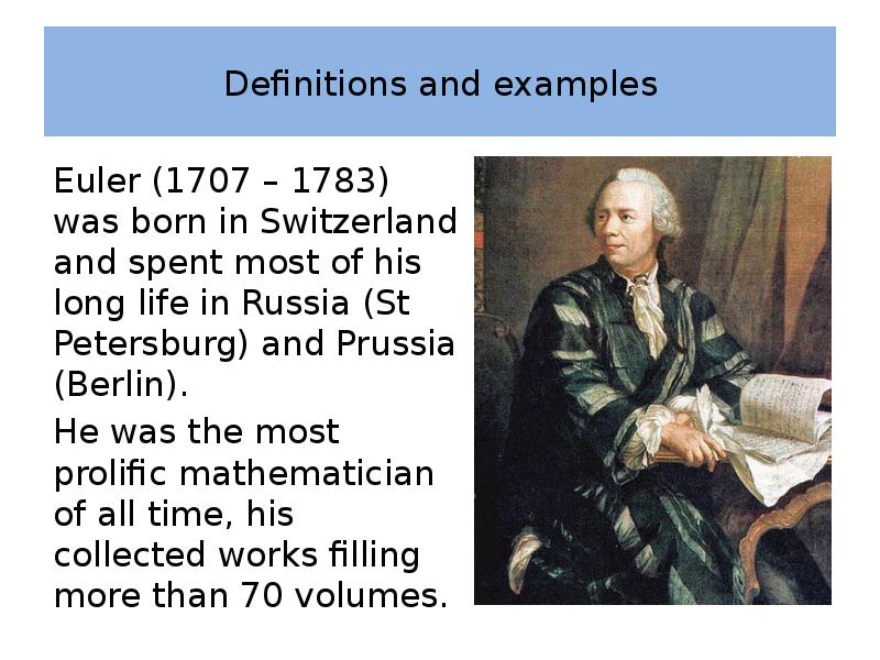 - 3. Definitions and examples Euler (1707 – 1783) was born in Switzerland