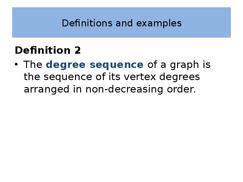 - 11. Definitions and examples Definition 2 The degree sequence of a graph