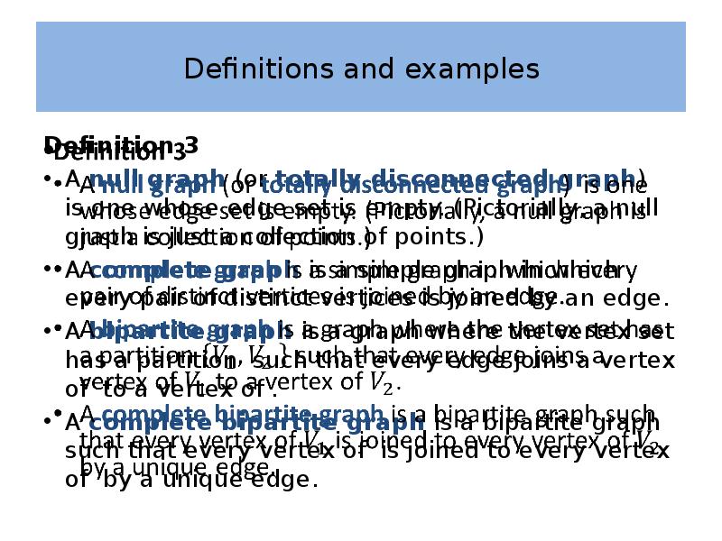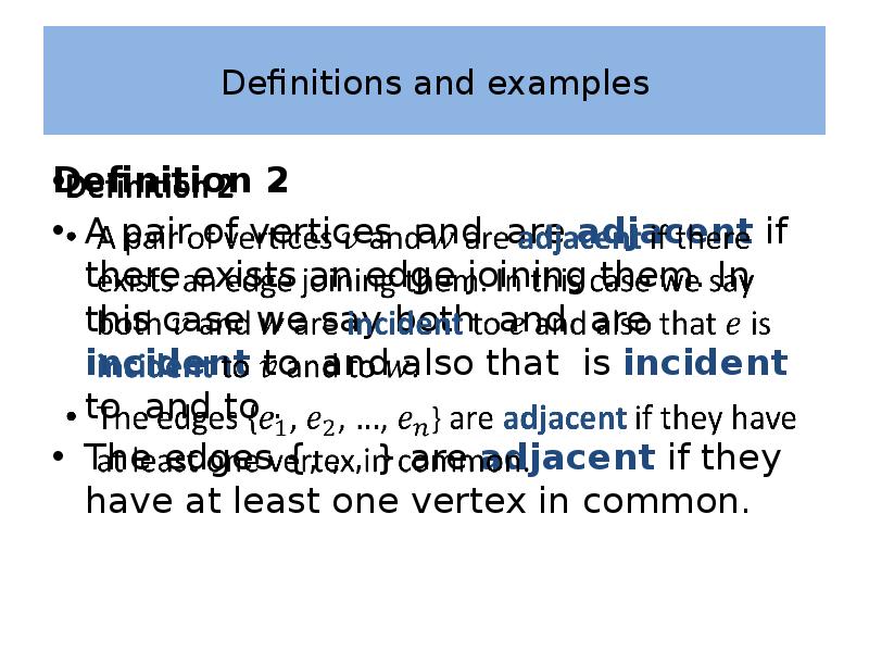 - 9. Definitions and examples Definition 2 A pair of vertices and are