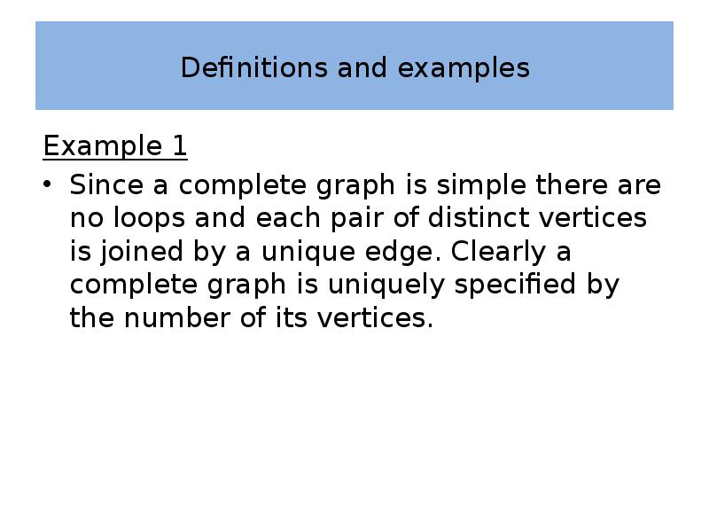 - 18. Definitions and examples Example 1 Since a complete graph is simple