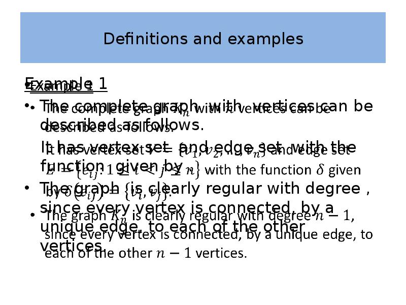 - 19. Definitions and examples Example 1 The complete graph with vertices can