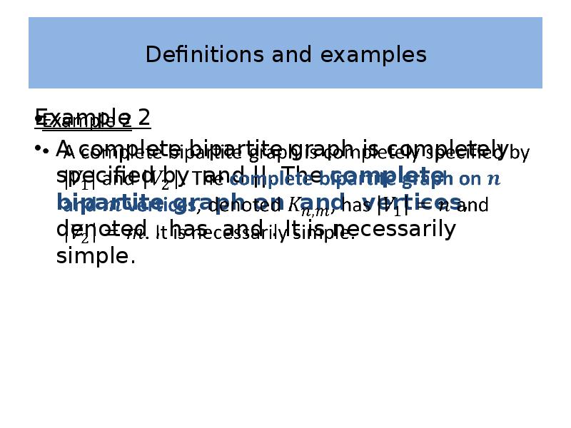 - 22. Definitions and examples Example 2 A complete bipartite graph is completely
