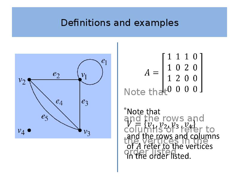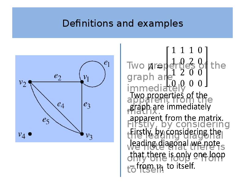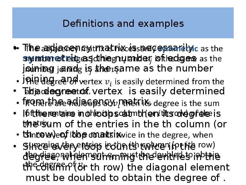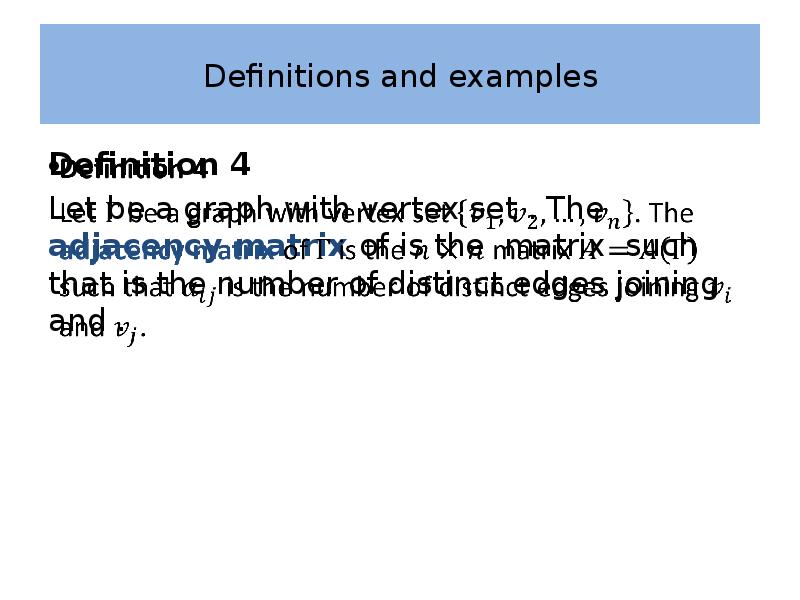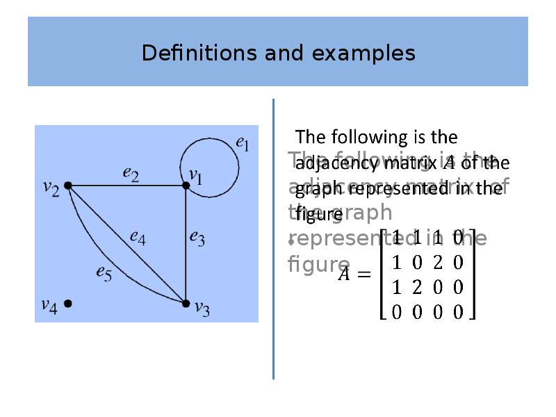 - 25. Definitions and examples The adjacency matrix is necessarily symmetric as the