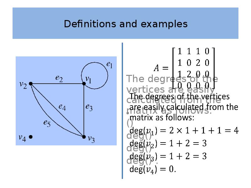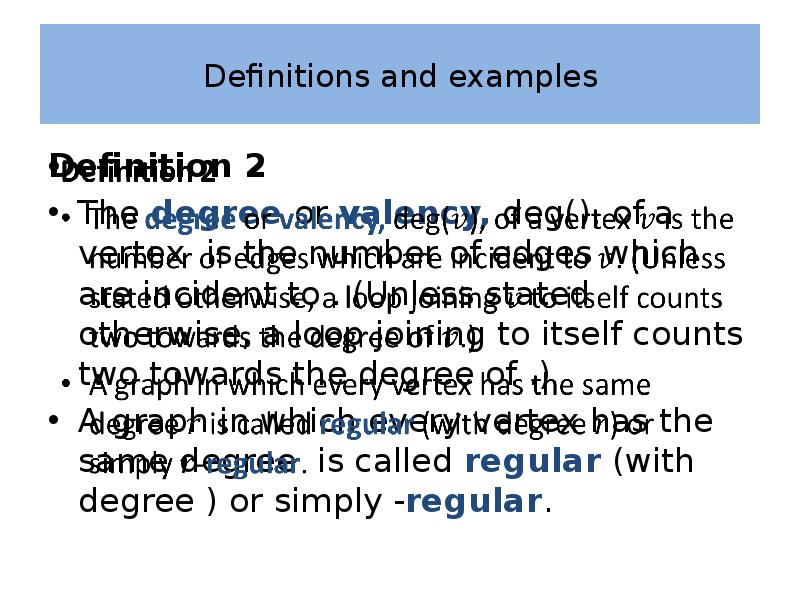 - 10. Definitions and examples Definition 2 The degree or valency, deg(), of