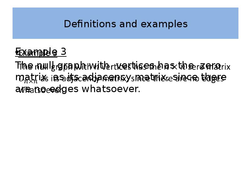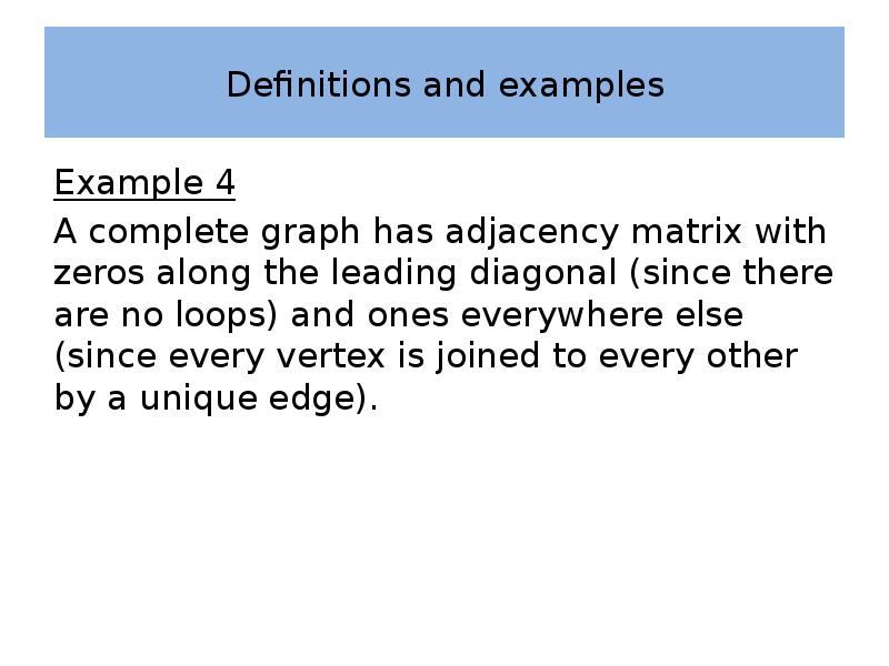 - 32. Definitions and examples Example 4 A complete graph has adjacency matrix