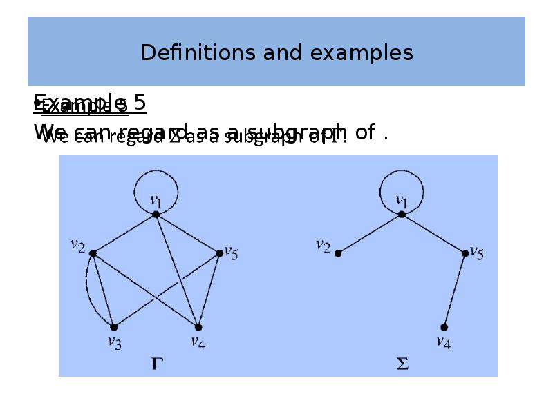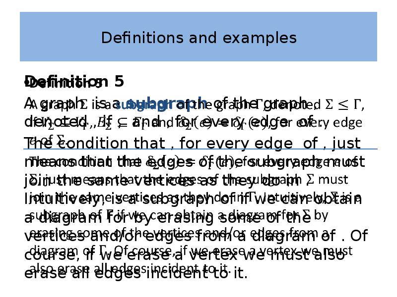 - 33. Definitions and examples Definition 5 A graph is a subgraph of