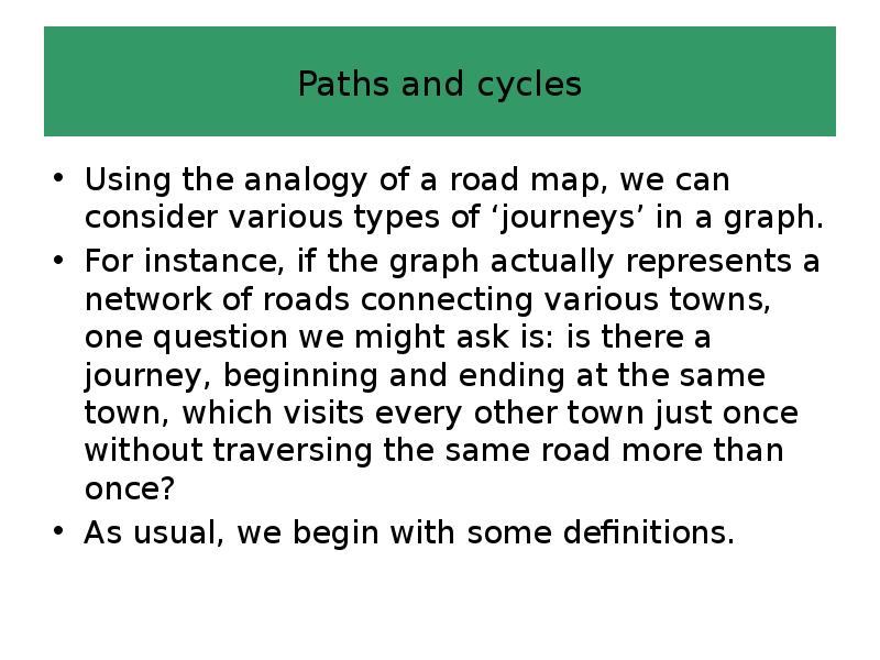 - 42. Paths and cycles If, in addition, we do not ‘visit’ the