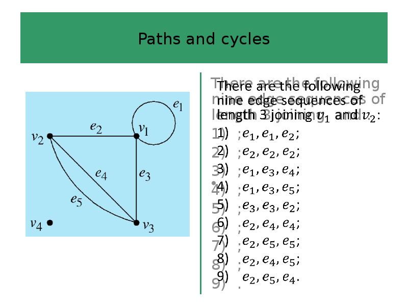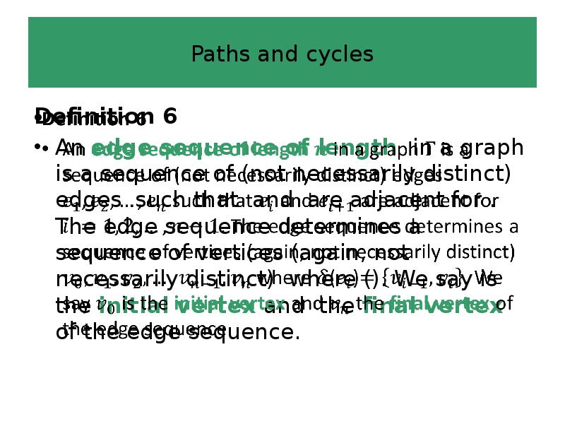 - 36. Paths and cycles Definition 6 An edge sequence of length in