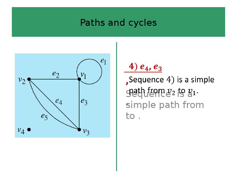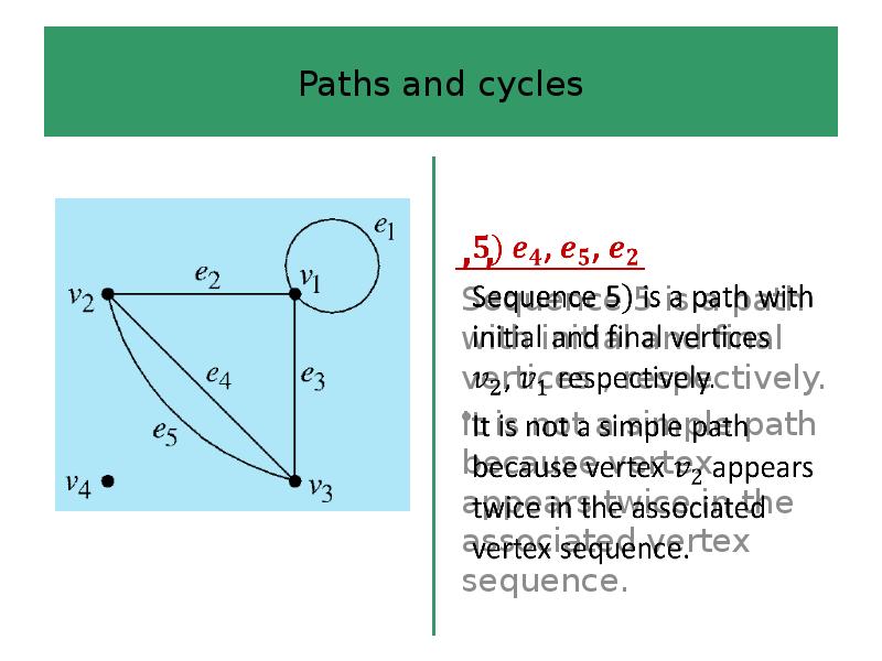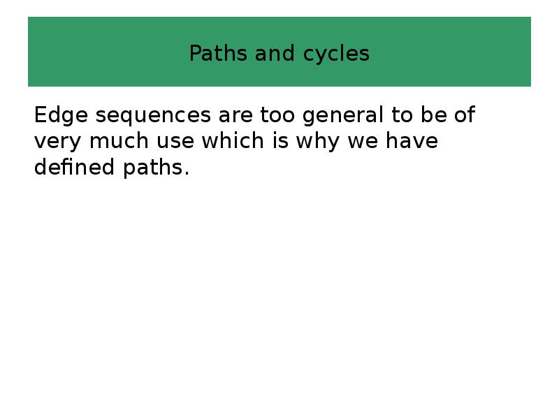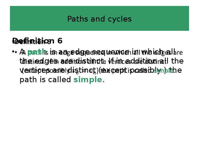 - 37. Paths and cycles Definition 6 A path is an edge sequence