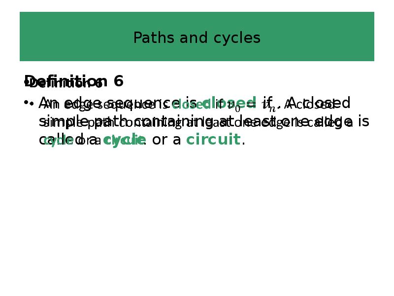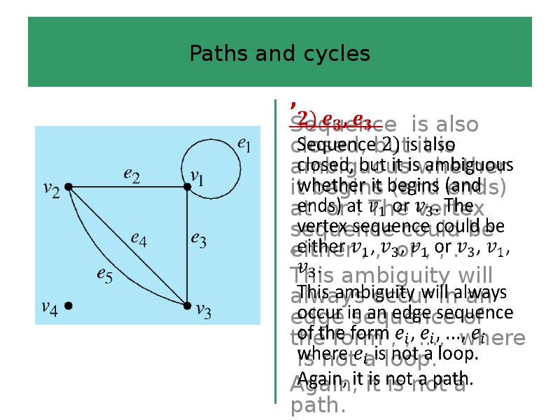 - 38. Paths and cycles Definition 6 An edge sequence is closed if