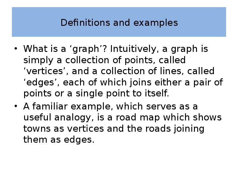 - 5. Definitions and examples What is a ‘graph’? Intuitively, a graph is