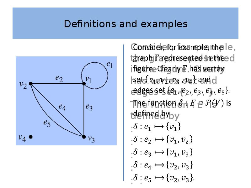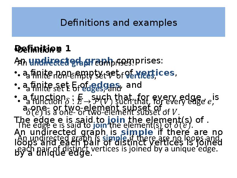 - 6. Definitions and examples Definition 1 An undirected graph comprises: a finite