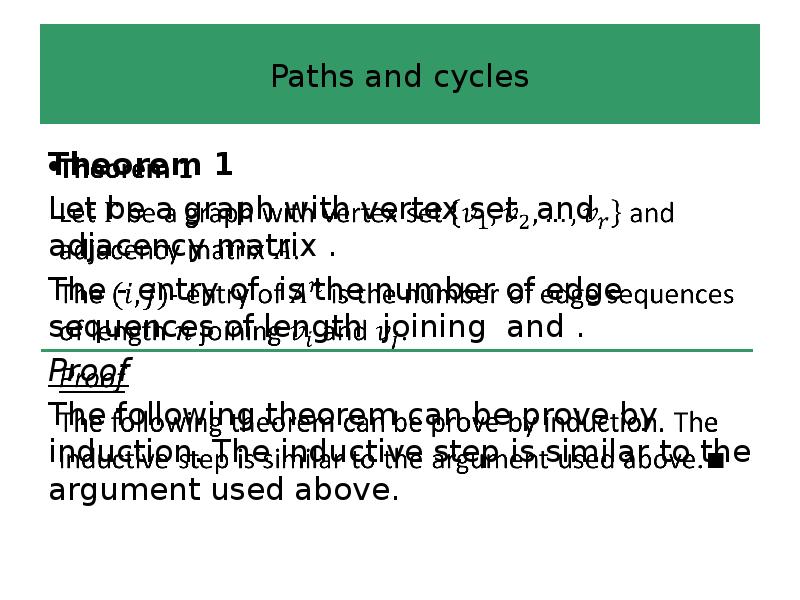 - 58. Paths and cycles Theorem 1 Let be a graph with vertex