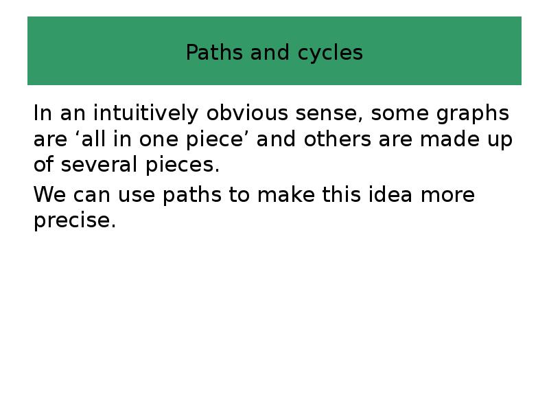 - 59. Paths and cycles In an intuitively obvious sense, some graphs are