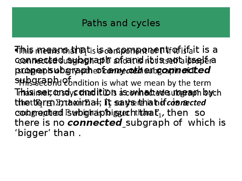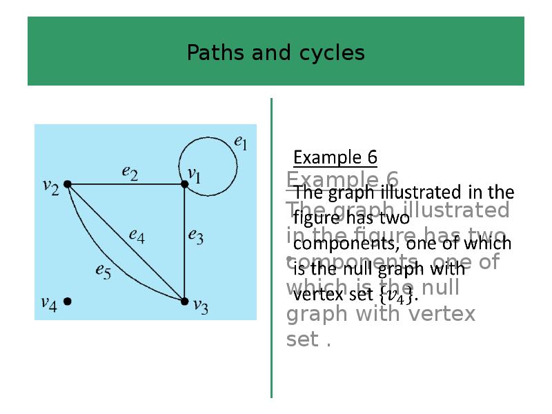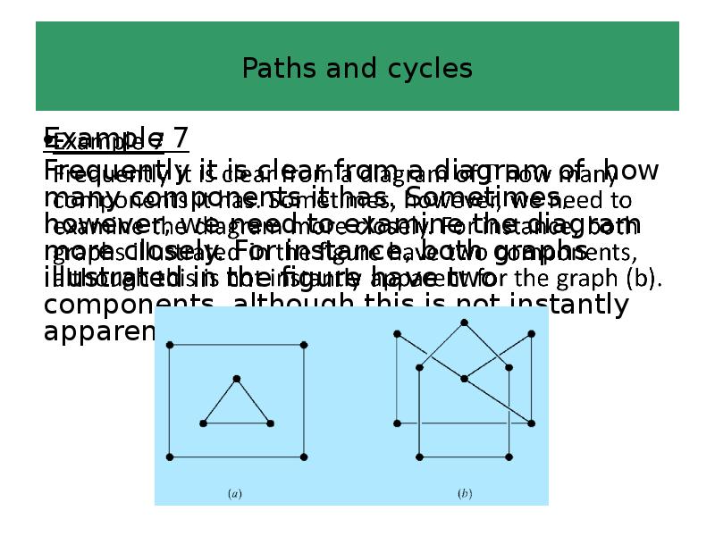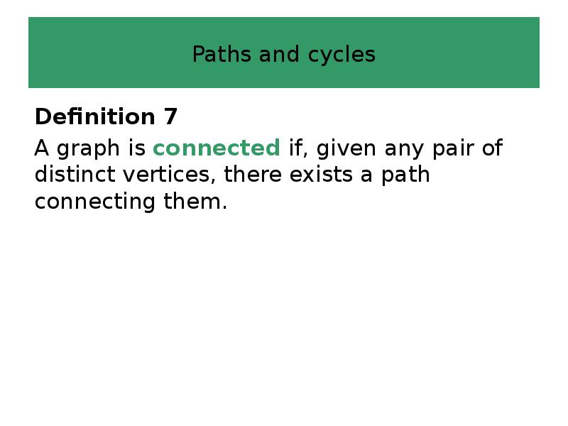 - 60. Paths and cycles Definition 7 A graph is connected if, given