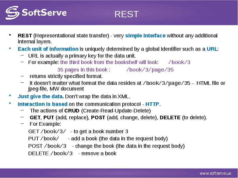 - 12. REST REST (Representational state transfer) - very simple interface without any