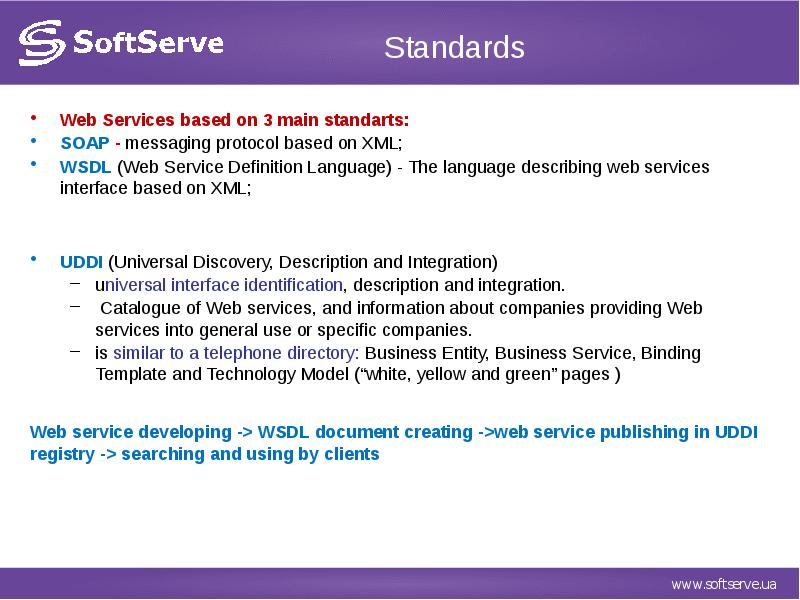 - 16. Standards Web Services based on 3 main standarts: SOAP - messaging