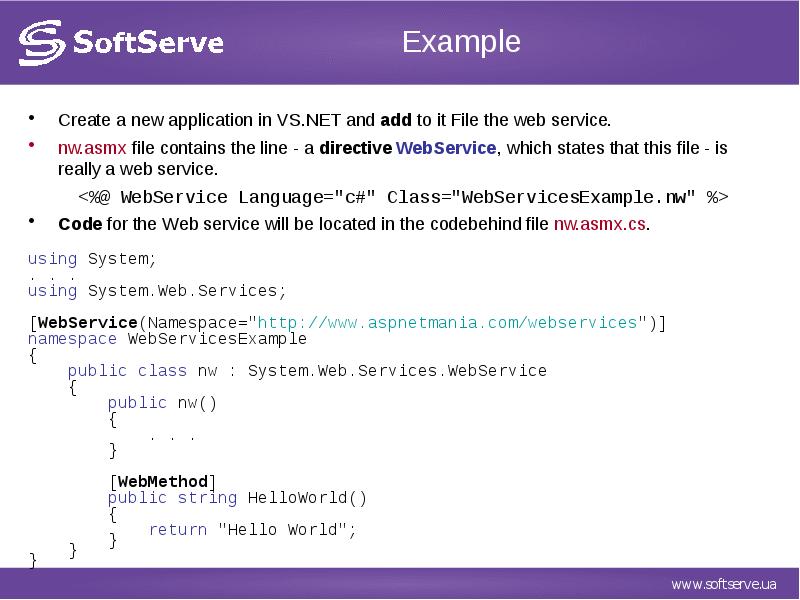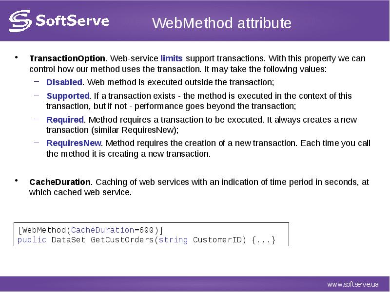 - 26. WebMethod attribute TransactionOption. Web-service limits support transactions. With this property we