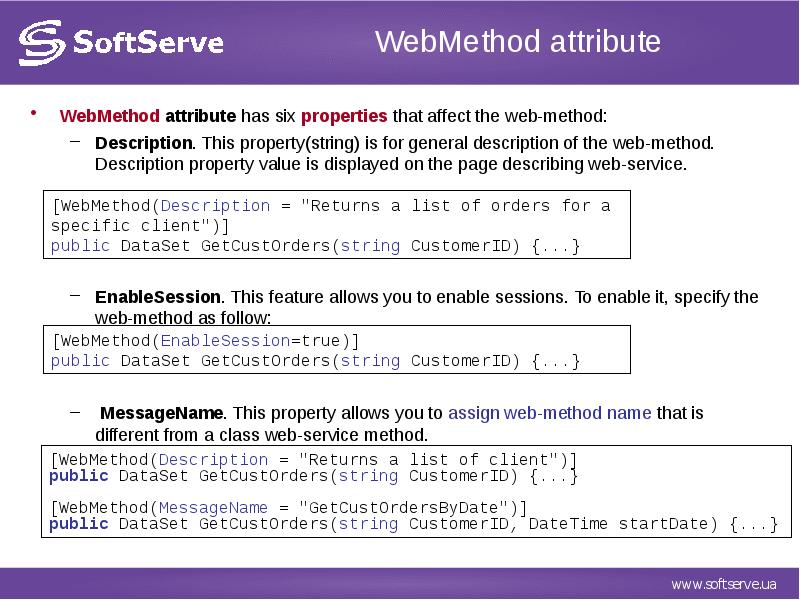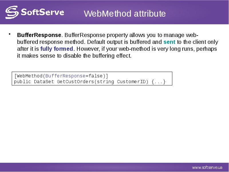 - 27. WebMethod attribute BufferResponse. BufferResponse property allows you to manage web-buffered response