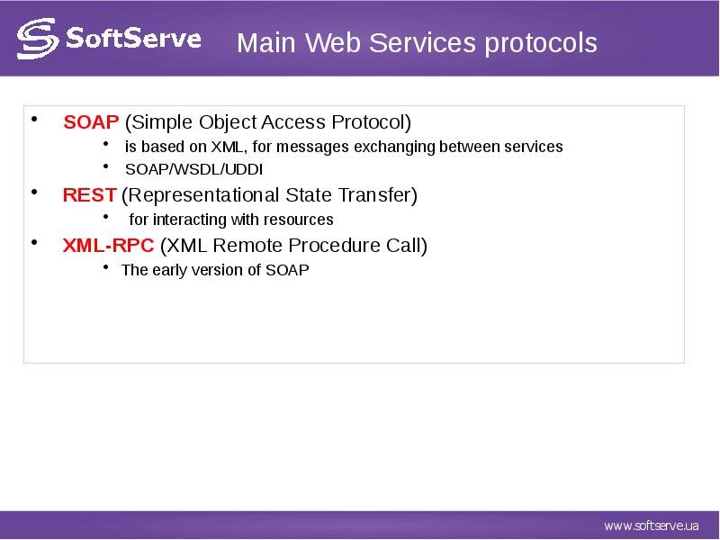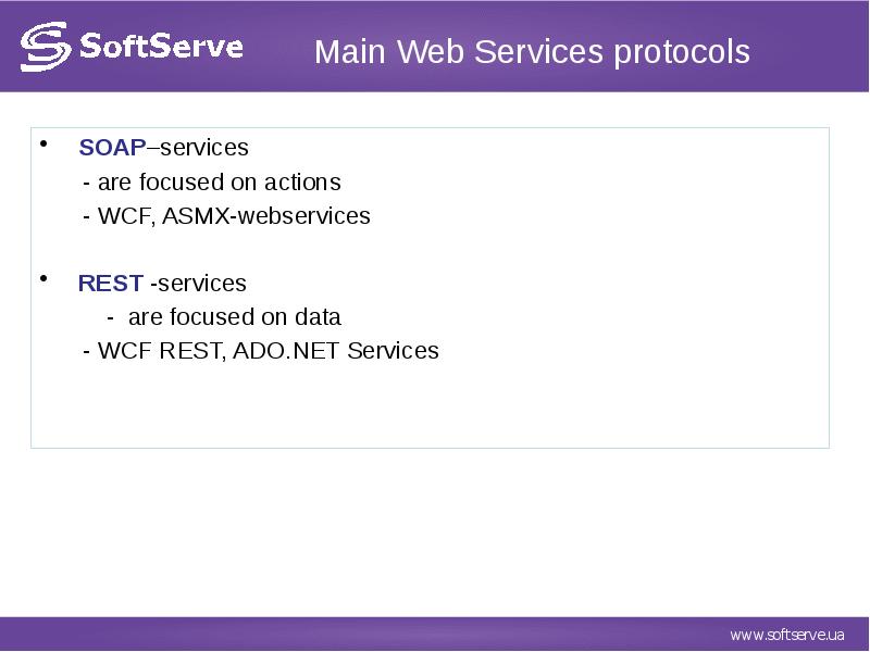 - 7. Main Web Services protocols SOAP–services - are focused on actions -